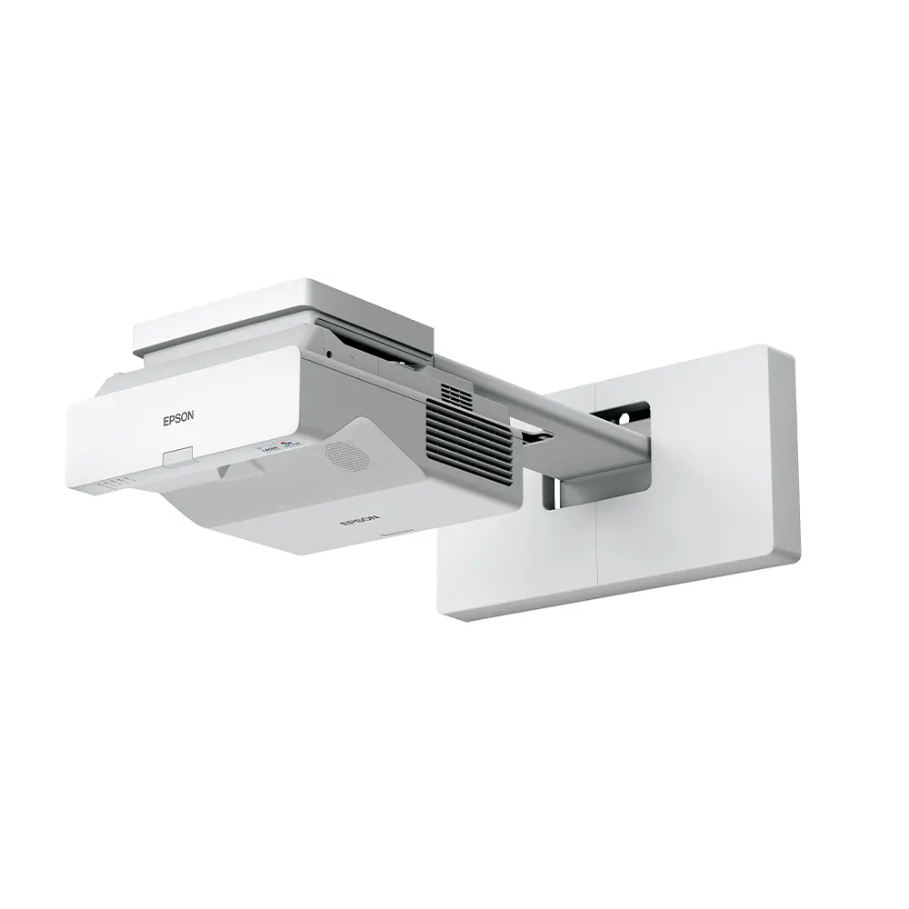 Obiektyw o ultrakrótkim rzucie projektora EB-770F umożliwia bezpieczne, dyskretne ustawienie w pobliżu ekranu, zapewniając prezenterowi swobodę działania bez rzucania cienia.